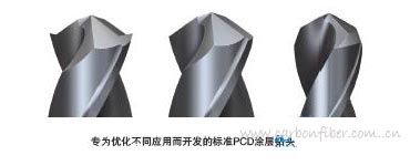 針對(duì)不同的材料和切削工況,需要提供不同鉆尖形式和材質(zhì)的具有PCD 涂層的標(biāo)準(zhǔn)、半標(biāo)準(zhǔn)和定制品鉆頭。精心開發(fā)的鉆尖,可以作為CFRP 高纖維基或高樹脂基的復(fù)合材料的首選,同時(shí)也可以加工復(fù)材金屬疊板材料。