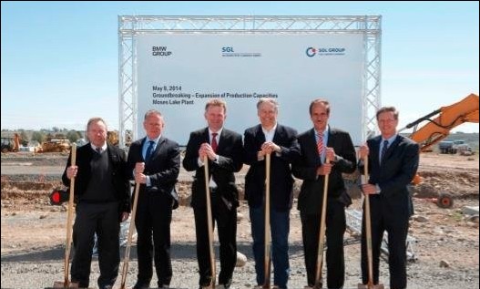 2014年5月9日,西格里集團(tuán)和寶馬集團(tuán)在位于美國華盛頓州摩西湖的西格里汽車碳纖維公司(SGL Automotive Carbon Fibers)摩西湖工廠舉辦擴(kuò)產(chǎn)奠基儀式,宣布繼續(xù)擴(kuò)大這家合資企業(yè)的產(chǎn)能。擴(kuò)產(chǎn)計(jì)劃將使該企業(yè)的碳纖維年產(chǎn)量提升至目前的三倍,為此,合資雙方在初始投資1億美元的基礎(chǔ)上,追加投資2億美元,計(jì)劃于2015年初完成擴(kuò)建項(xiàng)目,碳纖維的年產(chǎn)能將達(dá)到9000噸;工廠預(yù)計(jì)新增120個(gè)工作崗位,員工數(shù)量將由目前的80人增至200人。屆時(shí),摩西湖工廠將成為世界上最大的碳纖維生產(chǎn)基地;而寶馬集團(tuán)也將籍此進(jìn)一步深化輕質(zhì)材料科技在不同產(chǎn)品線上的應(yīng)用。 copyright 123456