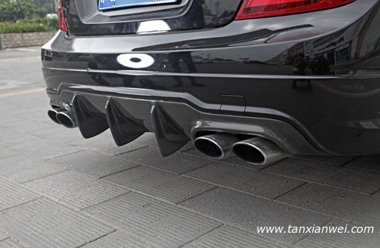 升級后唇一般是在更換排氣的情況下,隨著排氣尾嘴的數(shù)量和形狀的變化而匹配相應(yīng)的后唇。然而,對于像奔馳C63這樣原廠就擁有十分運動的四出式排氣,顯然后唇的升級似乎有些多余。也許是車主認為,原廠C63采用的塑料材質(zhì)后唇差些意思,在追求完美心理欲望的驅(qū)使下,便愿意花上數(shù)千元的價格換上一套讓自己滿意的碳纖維后唇。DTM款奔馳C63專用后唇采用碳纖維材質(zhì)打造,處于排氣中間的三道擾流板非常醒目,在為車輛增加行駛穩(wěn)定性的同時也為外觀效果增色不少。從車輛改裝之后的效果顯示,車主的選擇是明智的。該DTM款奔馳C63專用的碳纖維后唇目前售價為4500元人民幣。 123,123