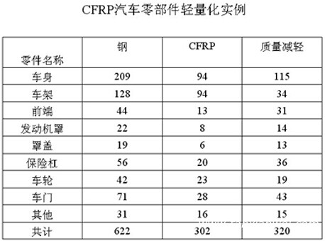 需要說明的是由于其成本和工業(yè)水平的原因,我國碳纖維復(fù)合材料在汽車零部件上的應(yīng)用還很有限。