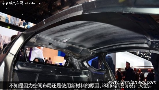 整個乘員艙的結(jié)構(gòu)由多層碳纖維復合材料拼合而成,輕量化和高強度是它最大的特點,這樣的設計類似于F1賽車中駕駛艙的單體橫造結(jié)構(gòu)(由碳纖維復合材料構(gòu)成),而最終的效果就是i8的車身重量不到1.5噸。