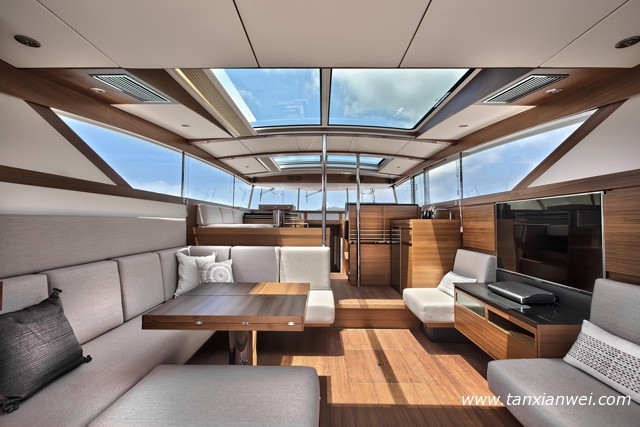 亞洲代理商納維特的首席執(zhí)行官Roger Samuelsson年輕時(shí)曾在瑞典居住,從6歲開始就駕乘游艇出海。他形容駕駛這款全碳纖維游艇的感覺,“就像在海上駕駛超級跑車一樣暢快!” Delta的操控性能突出,在水面上輕巧而穩(wěn)定,強(qiáng)大的引擎和內(nèi)建的Volvo IPS也讓駕駛格外愉快。此外,Delta優(yōu)雅以及流線型的北歐設(shè)計(jì)和360度開放式的觀景窗都會讓人嘆為觀止。