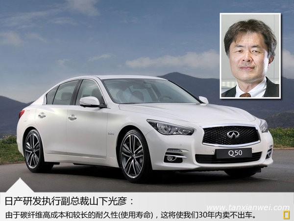 碳纖維技術不僅可以使車身輕量化,同時還可以強化車身強度,但是過高的成本費用令碳纖維材料的應用依然有局限性。日前,日產研發(fā)執(zhí)行副總裁山下光彥對于碳纖維材料的使用表示:“由于碳纖維高成本和較長的耐久性(使用壽命),這將使我們30年內賣不出車。”因而日產以及英菲尼迪在碳纖維技術方面將不會大規(guī)模應用于未來幾年所規(guī)劃的新車型中。