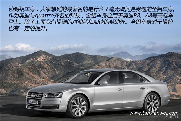 談到鋁車身,就不得不提到奧迪。作為奧迪與quattro齊名的科技,全鋁車身應用于奧迪R8、A8等高端車型上。除了上面我們提到的對油耗和加速的幫助外。全鋁車身對于操控也有一定的提升。編輯第一次開A8的時候就被它的駕駛感受驚呆了,你很難想象如此碩大的車型能擁有那么靈活的駕駛感受。甚至于在操控方面比更緊湊的A4還要強。如果您不相信的話,有時間不妨去4S店親自對比感受一下。也歡迎您與編輯交流。 本文來自123