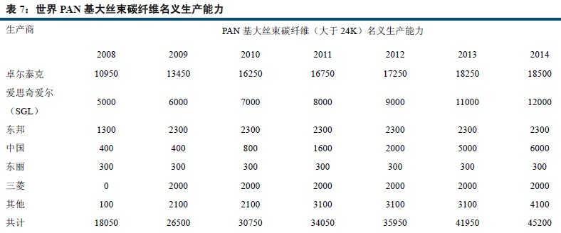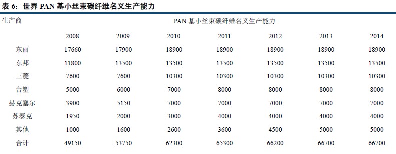 從國外對世界大絲束碳纖維生產(chǎn)能力的增長預測來看,大絲束碳纖維遠高于小絲束碳纖維。從兩者生產(chǎn)能力比例來看,趨勢也是不斷下降的,即小絲束碳纖維世界生產(chǎn)能力在世界總產(chǎn)能的份額不斷降低。大絲束纖維的應用會進一步擴大,而且會以較快速率擴大。 123,123