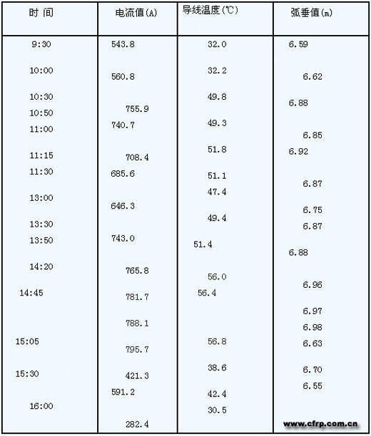 (2)夏季試驗(yàn):測量檔距 289 米;環(huán)境氣溫:上午陰28℃,下午晴32℃。
