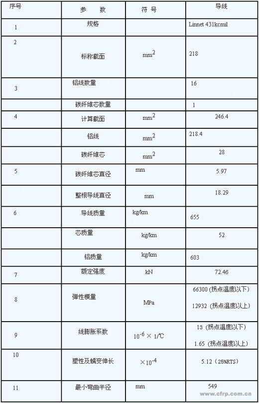 4.1.5 碳纖維合成芯導(dǎo)線參數(shù)表