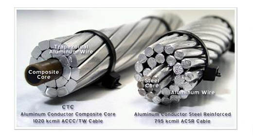 碳纖維復(fù)合芯采用合成碳纖維,全部都是非鐵磁性材料,而且不導(dǎo)電,所以不存在鋼絲材料引起的磁損和渦流損耗,在輸送相同負(fù)荷條件下,具有更低的運(yùn)行溫度,可減少輸電損失約6%。外層采用導(dǎo)電率不小于63%IACS的鋁線。