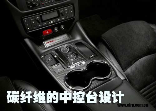 瑪莎拉蒂GranTurismo限量版采用了碳纖維材料的后視鏡、門把手,內(nèi)飾也采用了輕量化的碳纖維材料,并采用鋁合金賽車踏板。其中中控臺(tái)的碳纖維設(shè)計(jì)也別具一格。