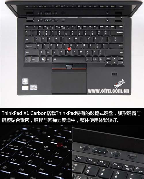 ThinkPad筆記本配置的鍵盤是廣大用戶公認(rèn)的使用手感最好的鍵盤,但由于超極本機(jī)身厚度大幅縮減,這迫使超極本不得不采用鍵程比較短的巧克力鍵盤,但是巧克力鍵盤并非手感都不好,ThinkPad X1 Carbon的巧克力鍵盤就打破了這種局面,它的弧形鍵帽與指腹貼合緊密,鍵程與回彈力度適中,整體使用體驗(yàn)較好。