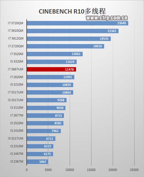 ThinkPad X1 Carbon搭載的第三代酷睿i7 3667UM低功耗處理器是目前主流超極本中定位較高的一款,它擁有兩個(gè)物理核心,支持英特爾超線程技術(shù)和睿頻2.0。在CINEBENCH R10處理器多線程測試中,i7 3667UM取得了11478分,其性能已超過上一代標(biāo)準(zhǔn)電壓雙核i7處理器,與新一代酷睿i5 3320性能表現(xiàn)相近,滿足日常應(yīng)用對CPU性能的需求。