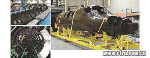 這些CFRP制部件由供應(yīng)商提供(圖9)。在對(duì)各部分進(jìn)行成形後,組裝成一個(gè)整體,利用高壓釜使其硬化。這樣就製造出了輕巧而且堅(jiān)固的機(jī)身。