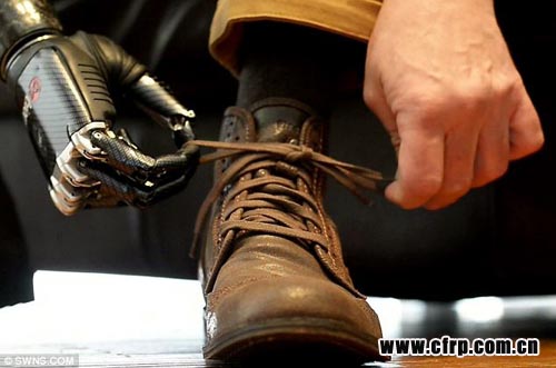 六年前的一場(chǎng)意外讓Nigel Ackland失去半截手臂,但他現(xiàn)在裝了碳纖維義肢,相當(dāng)靈活,可以穩(wěn)穩(wěn)握住啤酒瓶,也能輕輕夾住雞蛋而不致捏碎。