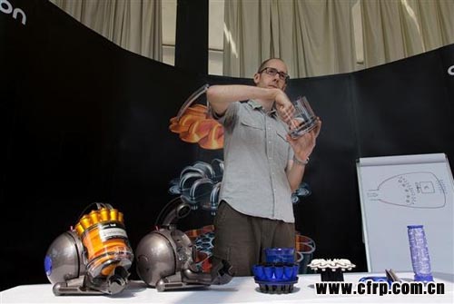 來(lái)到發(fā)布會(huì)現(xiàn)場(chǎng)的戴森資深設(shè)計(jì)工程師Andy在為大家講解吸塵器的構(gòu)造