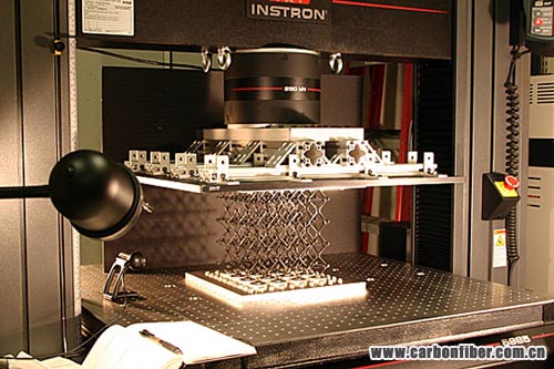在實(shí)驗(yàn)室中,蜂窩復(fù)合材料制備的樣品進(jìn)行測(cè)試它的強(qiáng)度性能。研究人員說,新材料,可以徹底改變組裝飛機(jī),航天器,甚至更大的結(jié)構(gòu),如堤壩和防洪??堤。