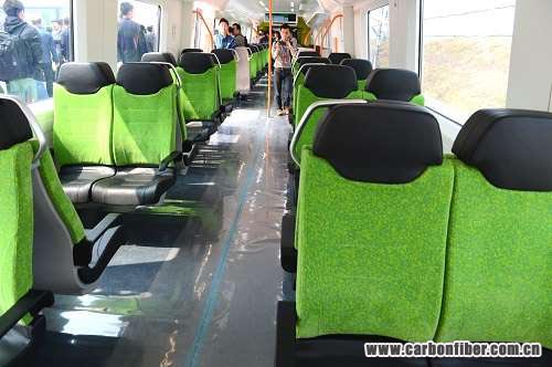 據(jù)了解,該款市域快軌車(chē)輛在制造材料上首次采用了碳纖維、鋁鎂合金等新材料,使得列車(chē)節(jié)能環(huán)保性更強(qiáng)。