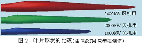 三菱重工從1982年開(kāi)發(fā)最初的商業(yè)用風(fēng)力發(fā)電機(jī)(300kW級(jí))以來(lái),又陸續(xù)將450kW、600kW級(jí)風(fēng)力發(fā)電機(jī)投入了市場(chǎng)。2003年開(kāi)發(fā)了具有世界一流性能水平的MWT-1000A,至2004年末世界各地共有約1800臺(tái)三菱制風(fēng)力發(fā)電機(jī)在運(yùn)轉(zhuǎn)。2006年預(yù)計(jì)推出2400kW級(jí)超大型、高性能風(fēng)力發(fā)電機(jī)(已經(jīng)實(shí)現(xiàn)—譯者注)。各類(lèi)別風(fēng)力發(fā)電機(jī)所用葉片的比較參見(jiàn)圖2。