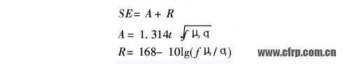根據(jù)Schelkunoff電磁屏蔽理論,材料的電磁屏蔽效能SE由吸收損耗A、反射損耗R和內(nèi)部反射損耗B組成。當(dāng)A大于10dB時(shí),B可以忽略,則屏蔽效能是A和R之和,用公式表示為: