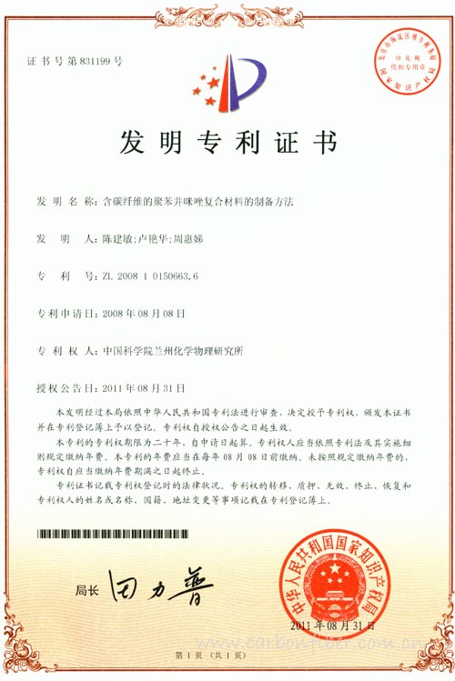 中國科學(xué)院蘭州化學(xué)物理研究所先進(jìn)潤滑與防護(hù)材料研發(fā)中心磨損和表面工程組研發(fā)出含碳纖維的聚苯并咪唑復(fù)合材料制備新方法,該項(xiàng)技術(shù)于近日獲得國家發(fā)明專利授權(quán)。(含碳纖維的聚苯并咪唑復(fù)合材料的制備方法,專利號(hào):200810150663.6)