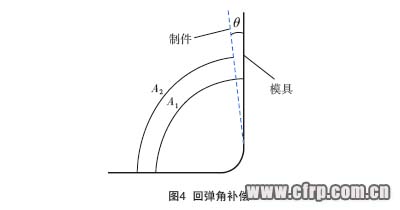 回彈角因與模具材料,鋪層方向及結(jié)構(gòu)對稱性有關(guān),可通過數(shù)字模擬及試驗(yàn)測試的方法得到,目前用的較多的是通過經(jīng)驗(yàn)值結(jié)合試驗(yàn)值來獲得回彈角的大小,而數(shù)字模擬有待于提高對熱壓罐溫度場及復(fù)合材料反應(yīng)機(jī)理的精準(zhǔn)分析。在模具設(shè)計時,預(yù)先把回彈角考慮進(jìn)去,即制件夾角加上回彈角等于模具夾角,使制件在脫?;貜椇蠓瞎こ虜?shù)模要求。