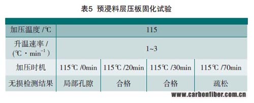 (3)注重預(yù)成型工藝和吸膠效果,協(xié)調(diào)好預(yù)成型工藝與固化工藝的關(guān)系,拓寬固化加壓窗口。