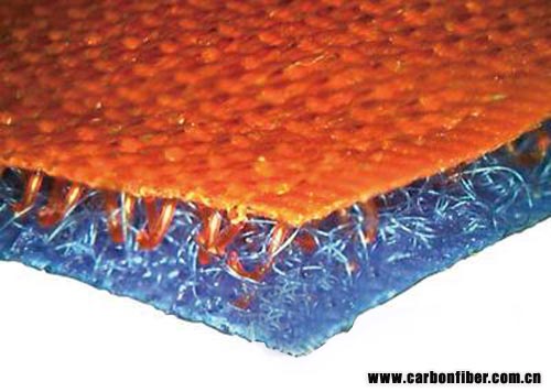 圖1 一種為層壓復合材料生產織物層的新方法,采用了像維可牢尼龍搭扣一樣的可在Z軸方向上實現連接的鉤-環(huán)鎖扣,從而將臨近的織物層連接起來