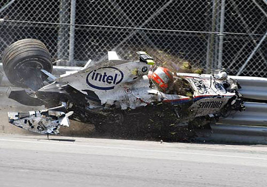 時(shí)過境遷,經(jīng)過精密計(jì)算和加工的單體殼車體,能夠滿足F1方程式賽車在極端碰撞下不變形的技術(shù)要求,喜歡看F1的車迷朋友肯定會(huì)記得2007年加拿大站庫比卡的賽車以超過300km/h的速度撞到防護(hù)墻,賽車被彈到空中掉落翻滾在賽道的另一頭從,賽車基本粉碎,可是座艙保持完好,車內(nèi)的庫比卡事后檢查只是扭傷了腳踝,竟然沒耽誤下一次的比賽。
