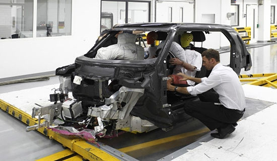 在民用汽車領(lǐng)域,奔馳嘗試應(yīng)用碳纖維材料作為潰縮區(qū)域,首先在SLR McLaren上得到了應(yīng)用。呈尖塔狀的碳纖維潰縮柱由無數(shù)根粗壯的碳纖維經(jīng)過編織而成,雖然結(jié)構(gòu)依舊無比堅(jiān)硬,但是在設(shè)計(jì)上讓它能夠在正面碰撞時(shí)破碎成無數(shù)細(xì)小的碎片,來吸收大量的能量,并且碎片不會(huì)對(duì)人造成傷害,這一點(diǎn)非常類似于汽車鋼化玻璃的破碎原理。