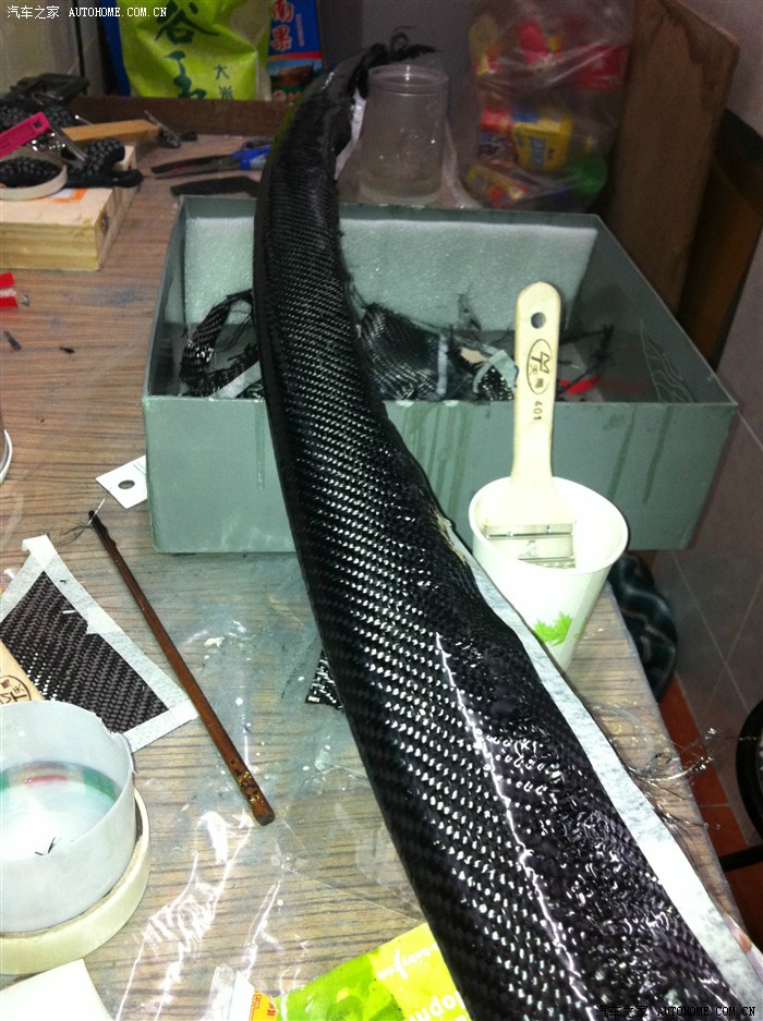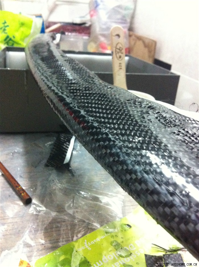 “車禍現(xiàn)場(chǎng)”兄弟,請(qǐng)看下面的幾個(gè)照片,尾翼制作過程中,包的雙層碳纖維,樹脂要刷好幾遍呢,這是第二層的第二遍,預(yù)計(jì)還要一周時(shí)間。